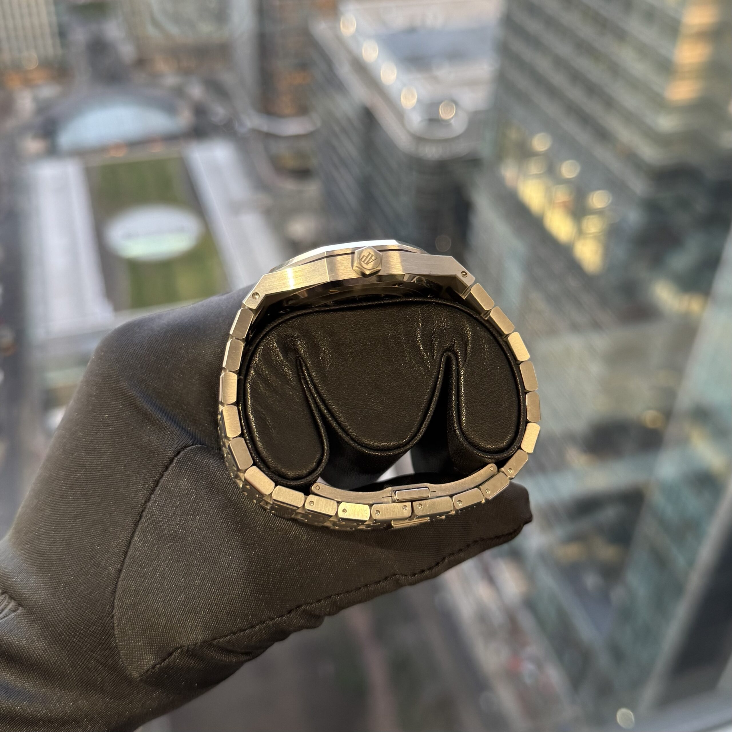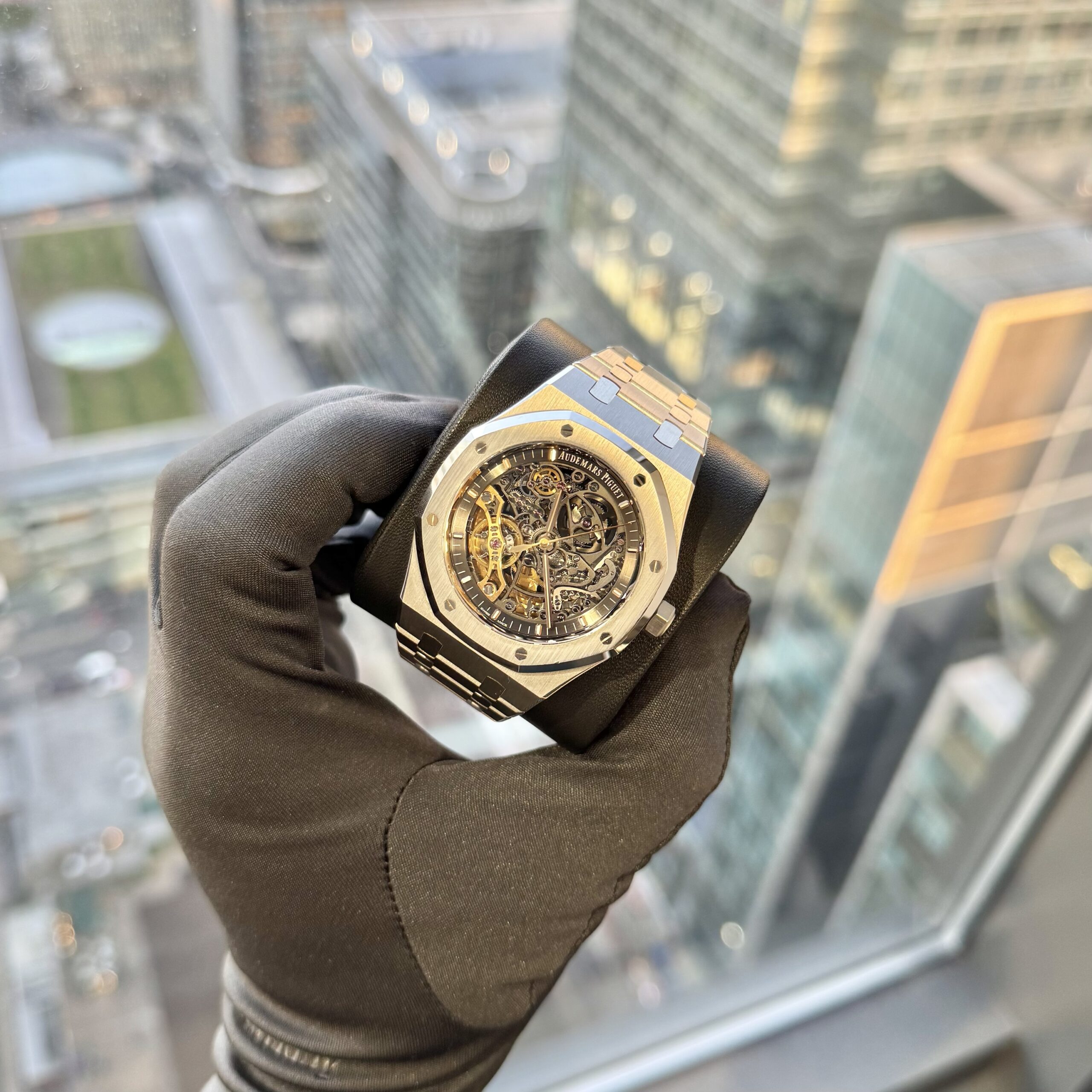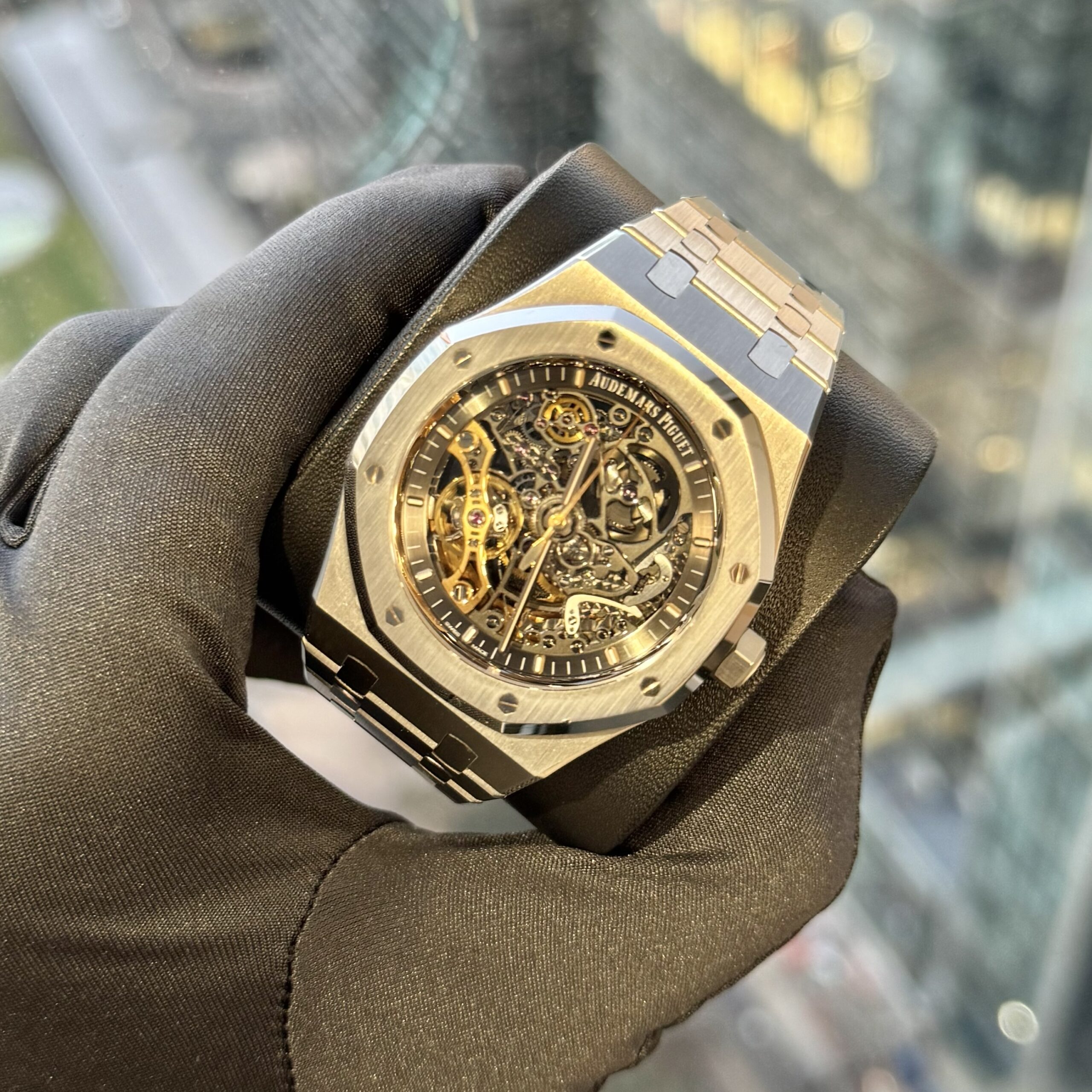 The Audemars Piguet Royal Oak Double Balance Wheel Openworked 15407ST (2019) is a striking stainless-steel skeleton watch that showcases the technical artistry of Audemars Piguet. Part of the iconic Royal Oak line, it features a 41 mm case with the signature octagonal bezel and an openworked dial that reveals the intricate movement inside. The watch is powered by the in-house Calibre 3132, distinguished by its patented double balance wheel mechanism that enhances stability and precision. With its architectural skeleton design, rhodium-toned bridges, and integrated steel bracelet, the 15407ST blends high horology with the bold, industrial aesthetic that defines the Royal Oak.